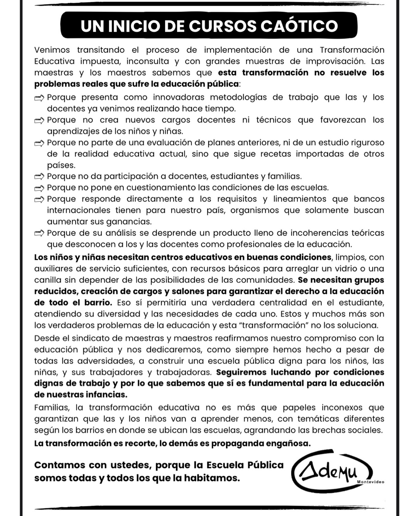Mensaje Público de Ademu Mdeo. en el inicio de clases